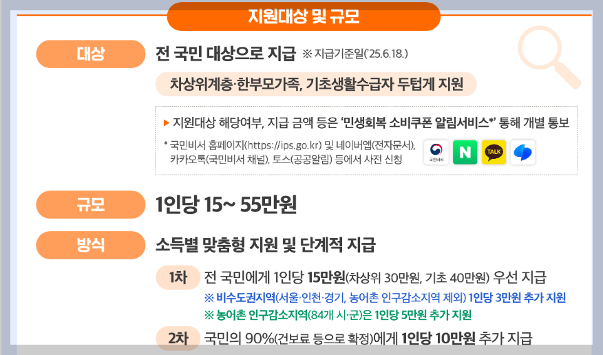 소비쿠폰으로 55만원 받기! 2025 국민지원금 신청방법·기간 완벽 안내